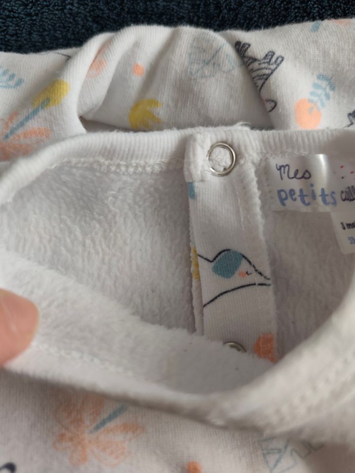 Pyjama molletonné mes petits cailloux taille 3 mois 59 cm parfaite et toi maison non fumeur