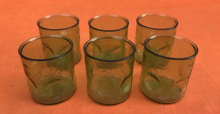 (Lot 2)  Années 1970 6 verres à orangeade  Verre bullé et coloré  - photo numéro 1