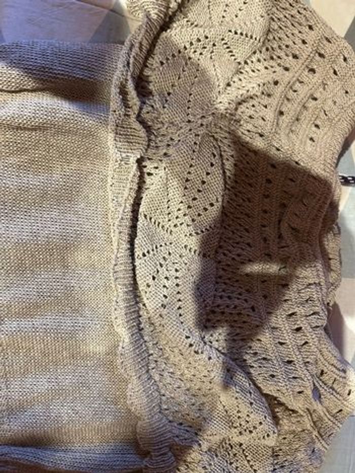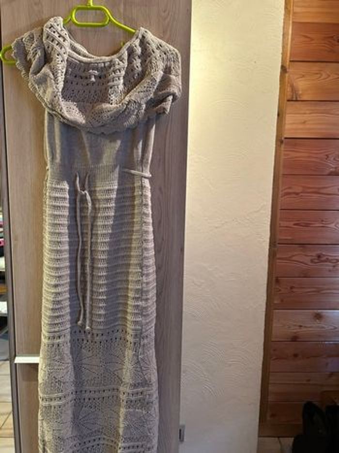 Robe été longue couleur taupe en coton avec lanière pour la resserrer à la taille possibilité de mettre le col d épaules à épaules neuve ajourée avec motifs