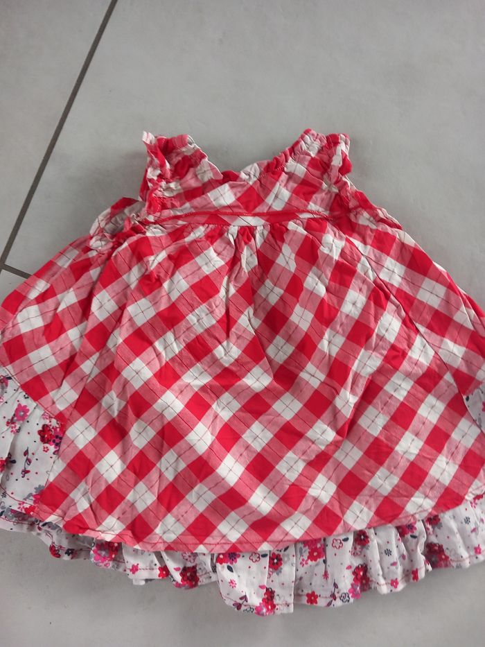 Robe d'été sans manche à carreaux rouge et grise. Doublée 100% coton Taille : 6 mois Marque : Absorba État : très bon état