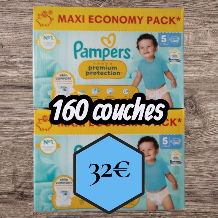 Couches Pampers premium protection maxi Economy pack taille 5 80 couches x2 soit 160 couches au total 32€ prix ferme ! Premier arrivé premier servi Envoi rapide et soigné