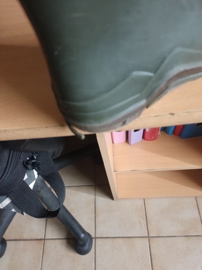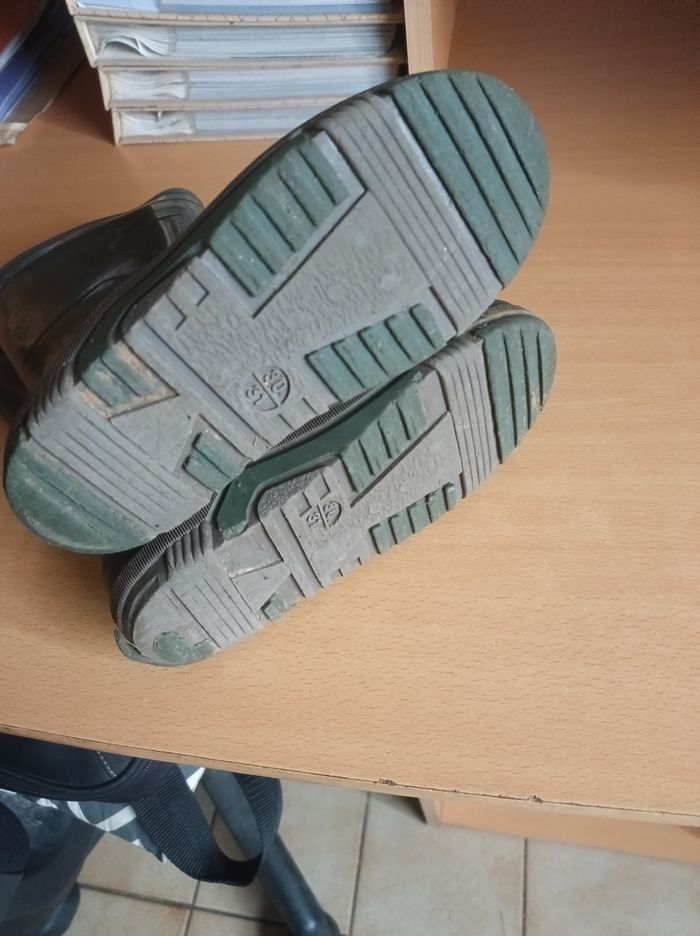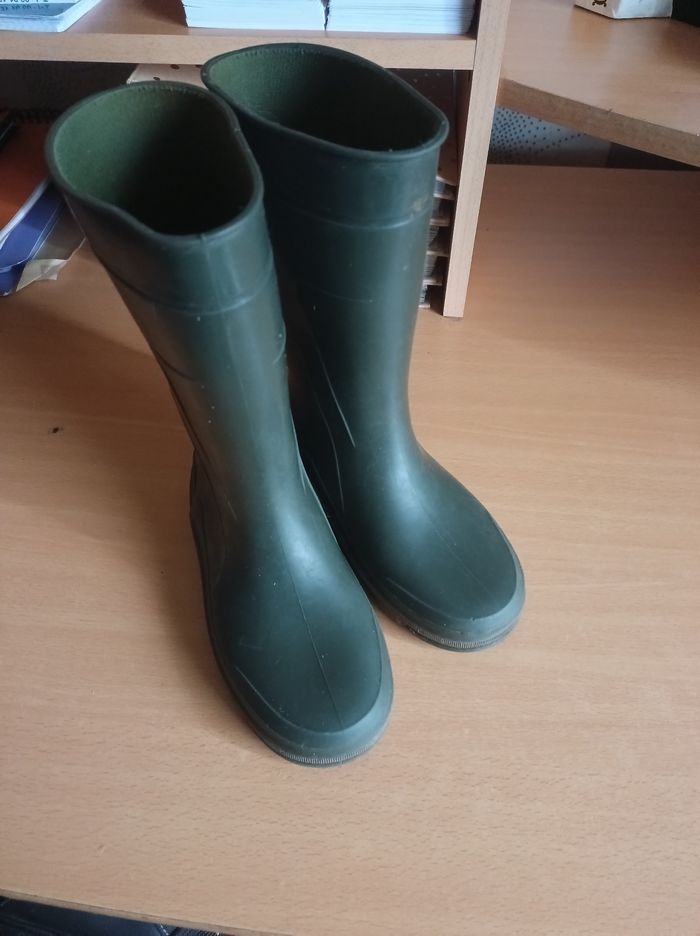 Bottes de pluie - Pointure 30/31. Le derrière d'une botte est légèrement abîmé. Le tissu à l'intérieur des bottes est un peu parti (peut-être prévoir une petite semelle). Quelques traces sur les bottes.