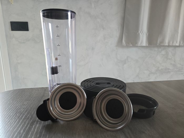 Lot d'accessoires pour cafetière Senseo Switch. Tous les accessoires sont 100% originale PHILIPS/SENSEO (ce ne sont pas des compatibles). Il y a (dans l'ordre des photos) : - le support dosette (1 tasse) - le support dosette (2 tasses) - le bac égouttoir (repose tasse) - la bague d'étanchéité pour support dosette - le réservoir d'eau Tout est en bon état, les éléments ne sont pas cassés, ni fissurés. Certains ont quelques traces d'usures causé par le nettoyage (rayures) mais cela ne gêne en rien à l'utilisation. Tout est entièrement fonctionnel. Valeur neuf des accessoires (env. 70€). 15€, envoi rapide et soigné.