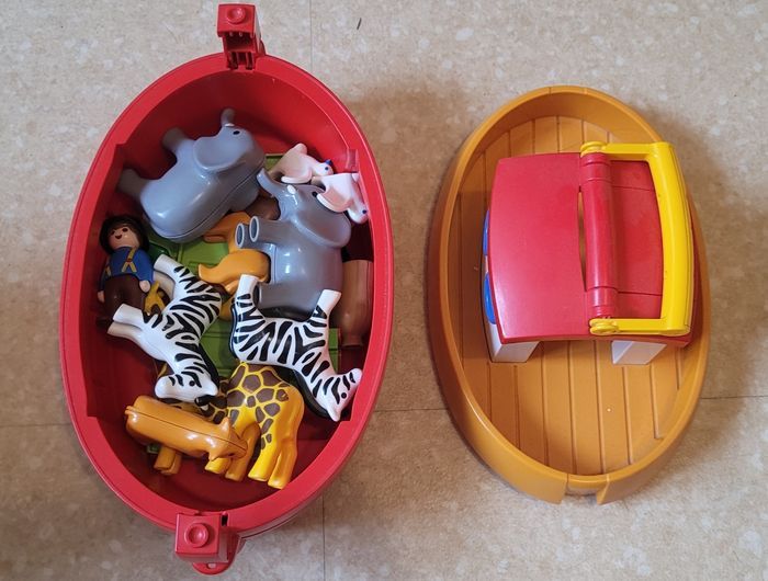 Vends lot de playmobil 123, il y a 3 boîtes. 2 boîtes avec leurs emballage d'origine et l'arche de noe sans sa boîte.
