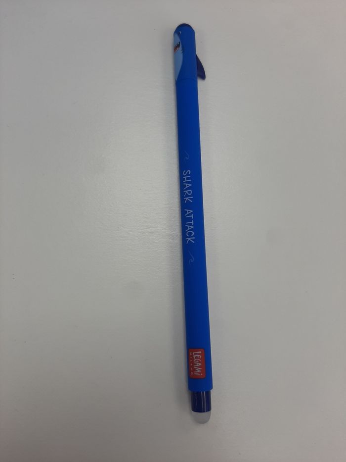 Stylo effaçable de la marque Legami Le requin écrit bleu