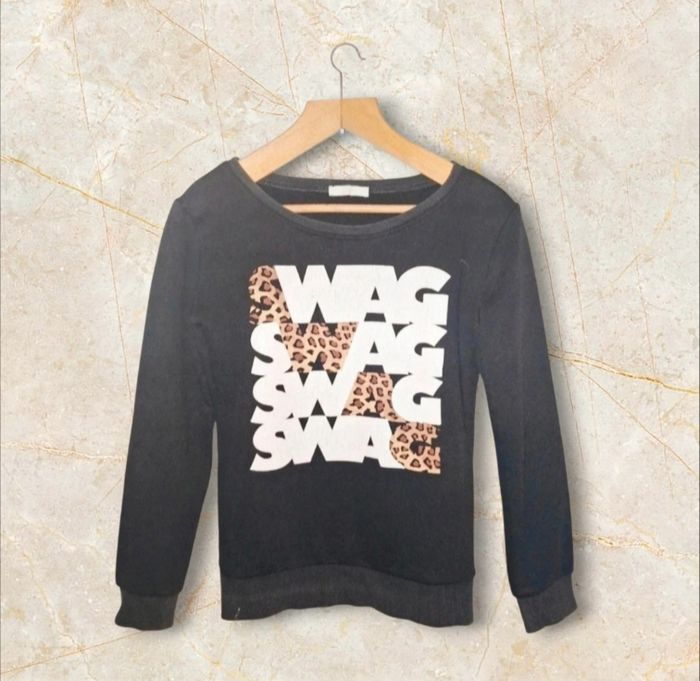 Sweat taille Xs (étiquette manquante) en bon etat car le motif swag un peu effacé