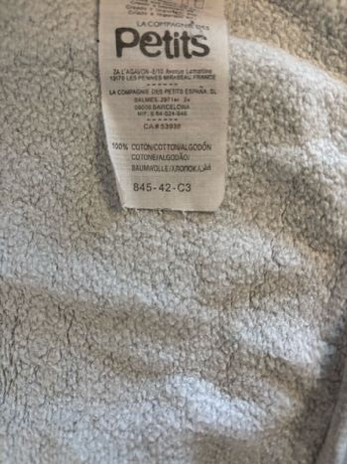 Gilet zippé 3 ans Marque : La Compagnie des Petits Matière sweat gratté. Plutôt léger 100% coton Étiquette avec le nom de mon enfant thermocollee
