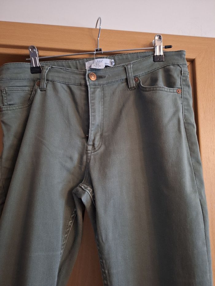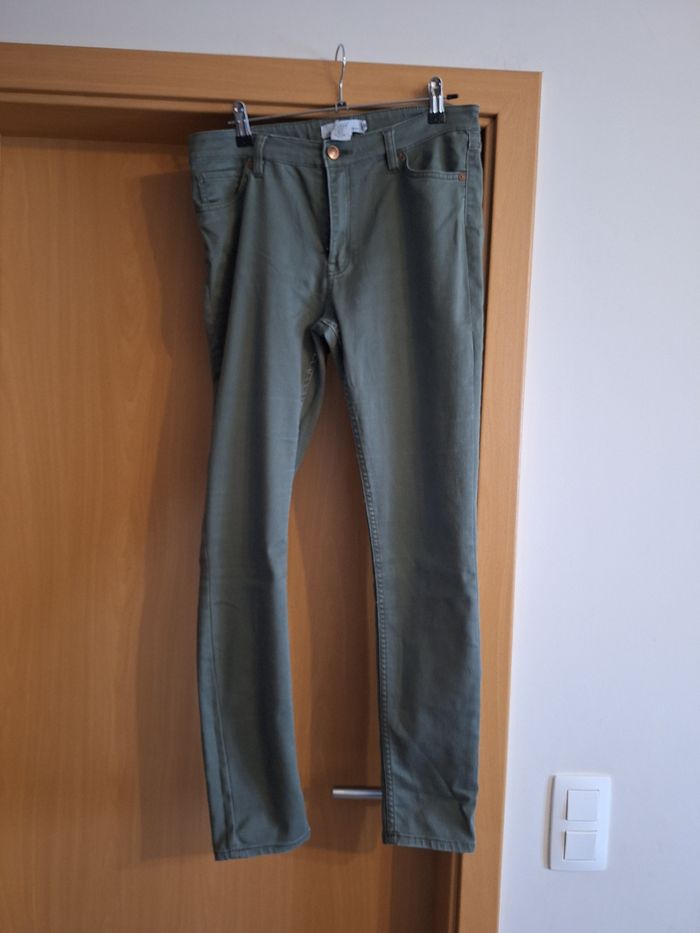 Jeans kaki tres bon état couleur Kaki .Pas d usure entre les jambes. TAILLE 42.