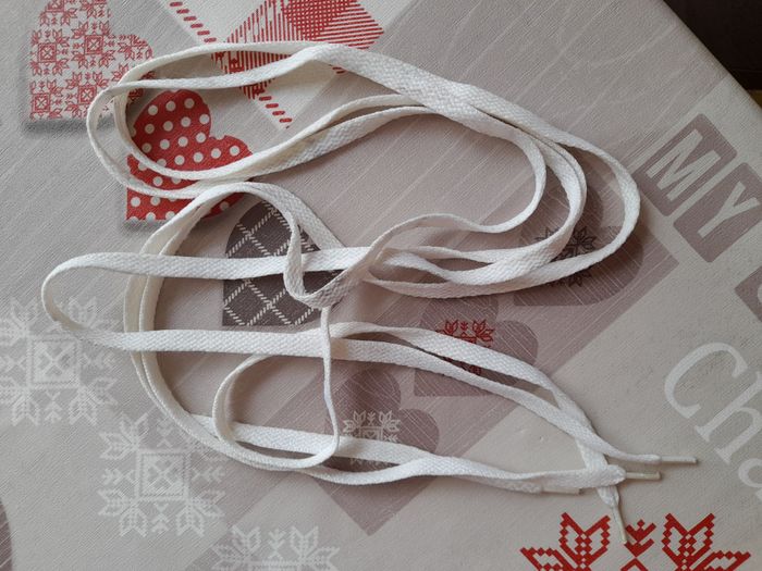 Lacets Photo 1 - 75 cm - noir Neuf jamais utilisé Photo 2 - 140 cm - blanc déjà utilisé 1 euro l'unité 2 euros le lot
