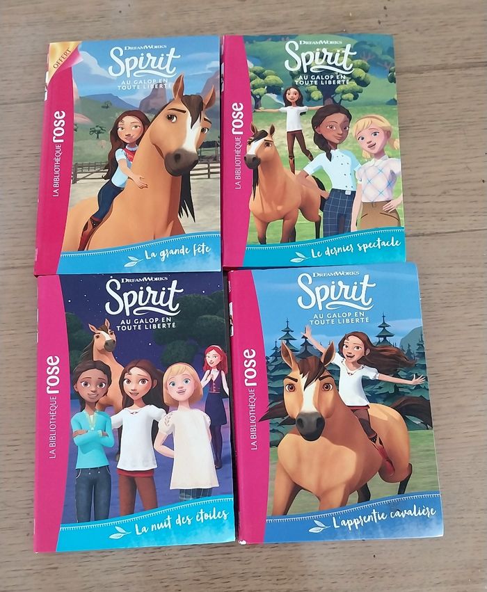 Lot de 4 livres enfant en très bon état général Coins légèrement abîmés sur certains ⚠️ lot indissociable ⚠️ Collection "spirit au galop en toute liberté" Bibliothèque rose