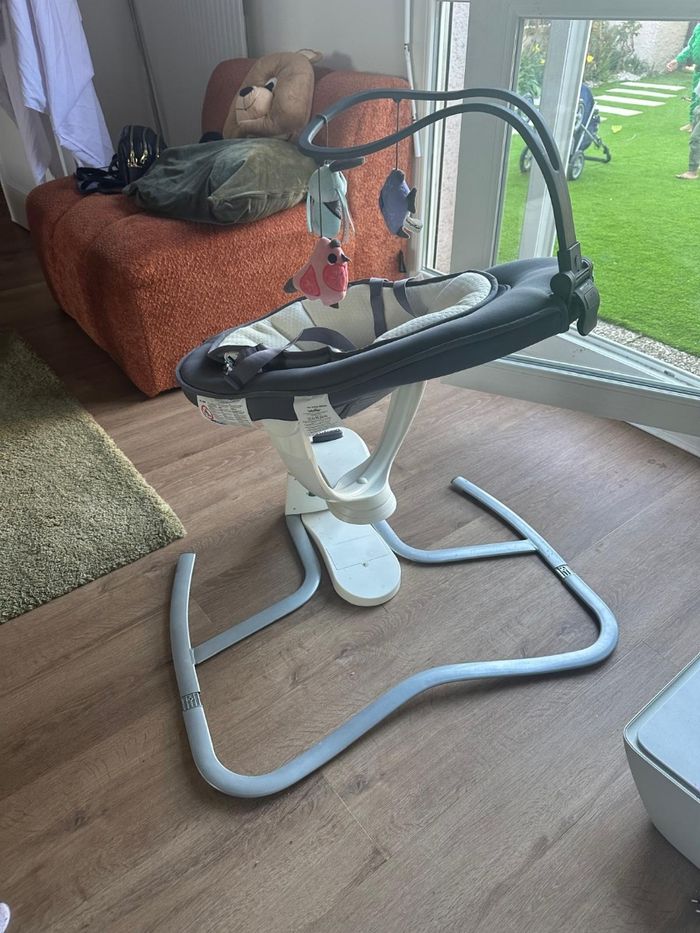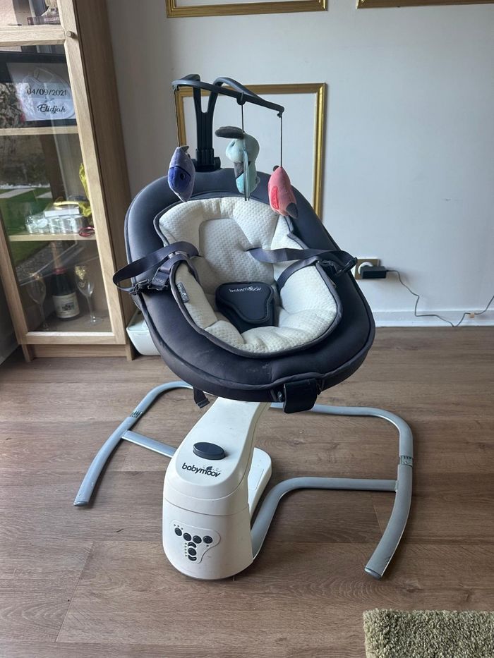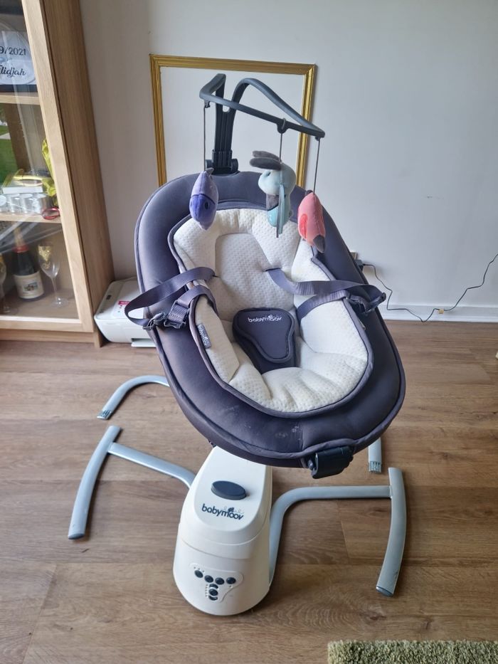 Balancelle babymoov pour bébé, de la naissance jusqu'au 10 mois de bébé, 8 mélodies intégrée, Rotation de l’assise à 360°. Fonctionne parfaitement bien avec des piles ou directement sur une prise.