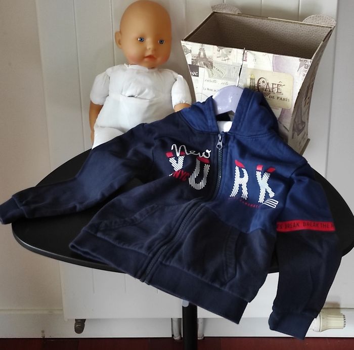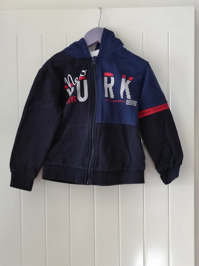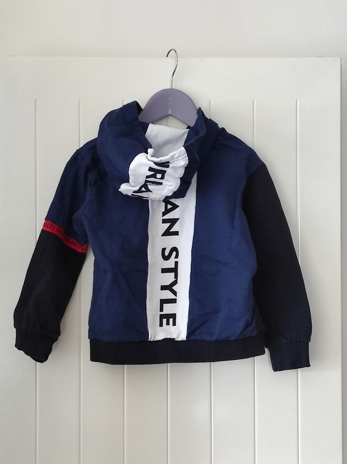 🔵 Veste zippée à capuche garçon – 4 ans – Marine/Blanc/Rouge/Noir - photo numéro 1