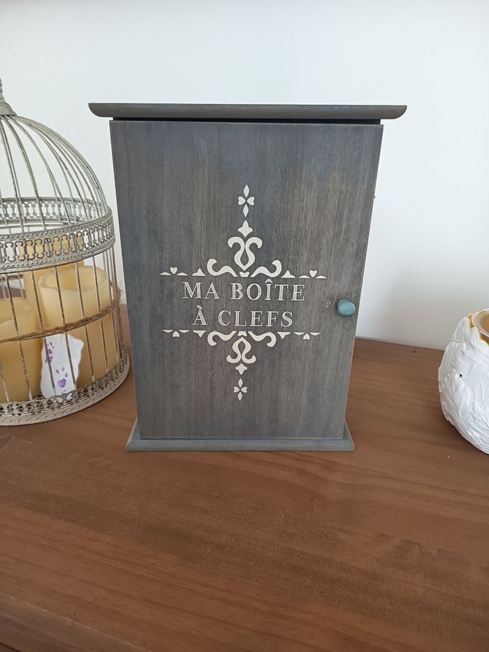Boîte à clé en bois gris 6 crochet à l'intérieur En très bon état Longueur 30 cm Largeur 19.5cm Profondeur 5cm #boiteaclé #deco