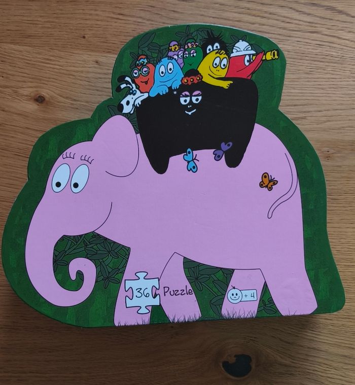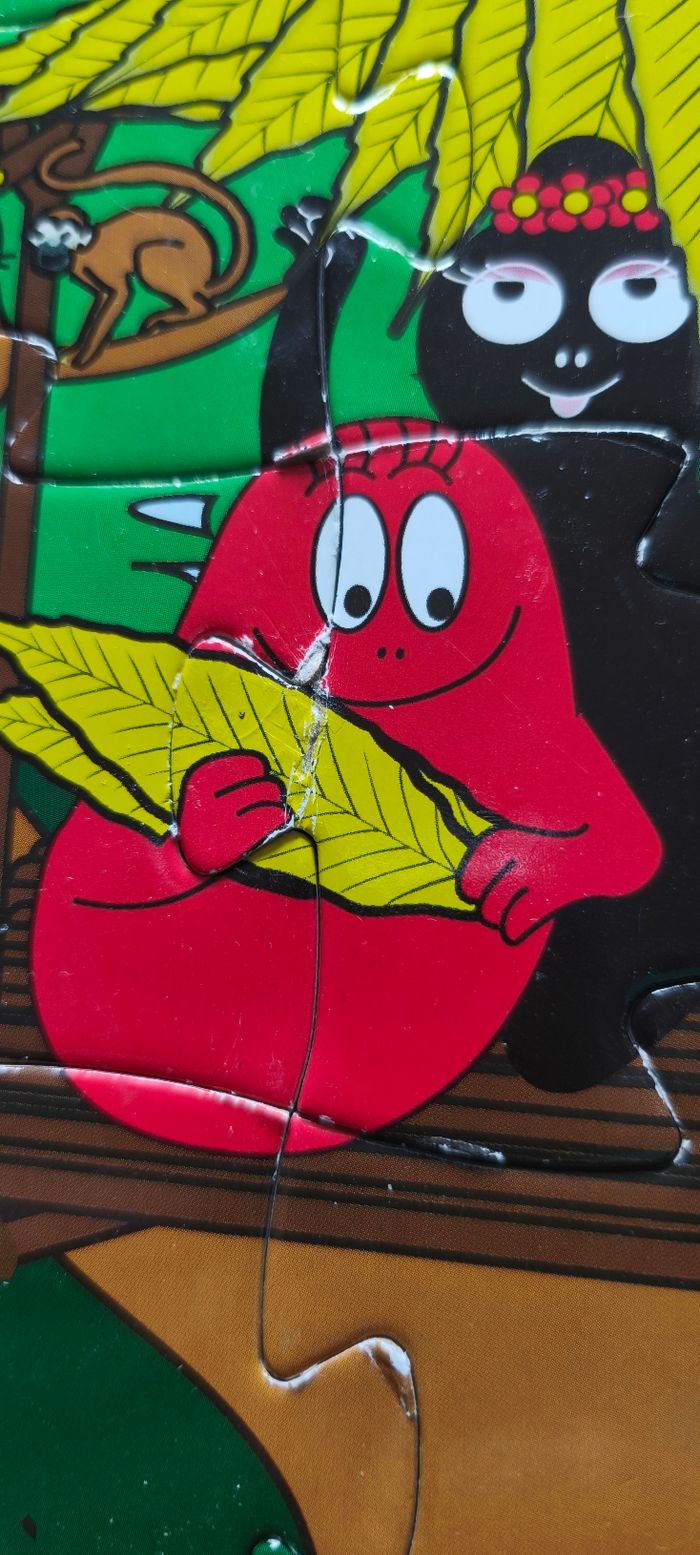 Puzzle Barbapapa complet 36 pièces de grandes tailles pour les petites mains En bon état Une pièce est plus abîmée (voir photo) mais ne gêne en rien pour faire le puzzle