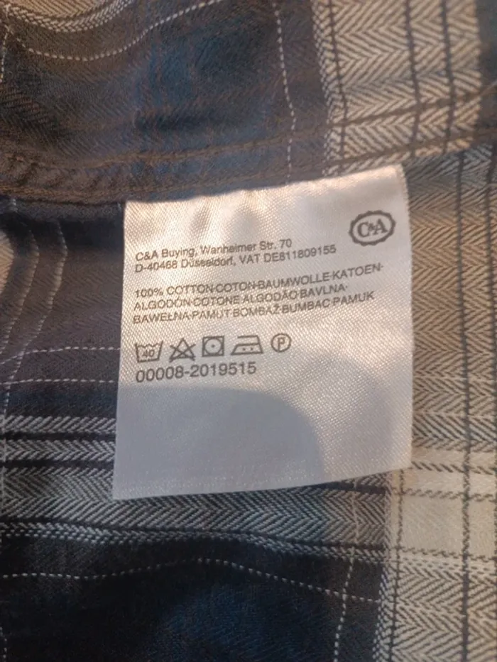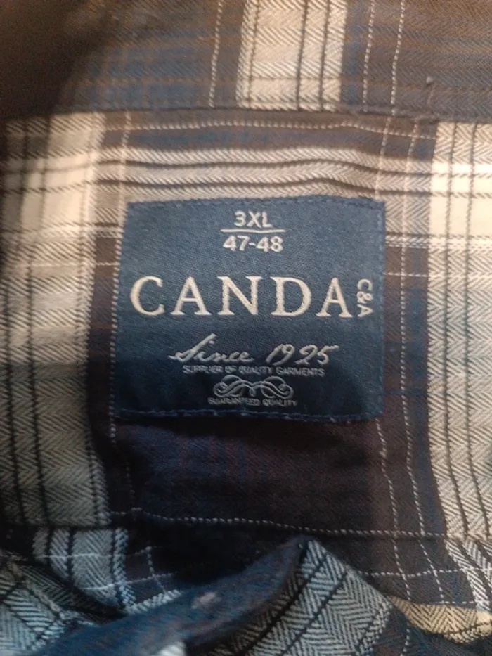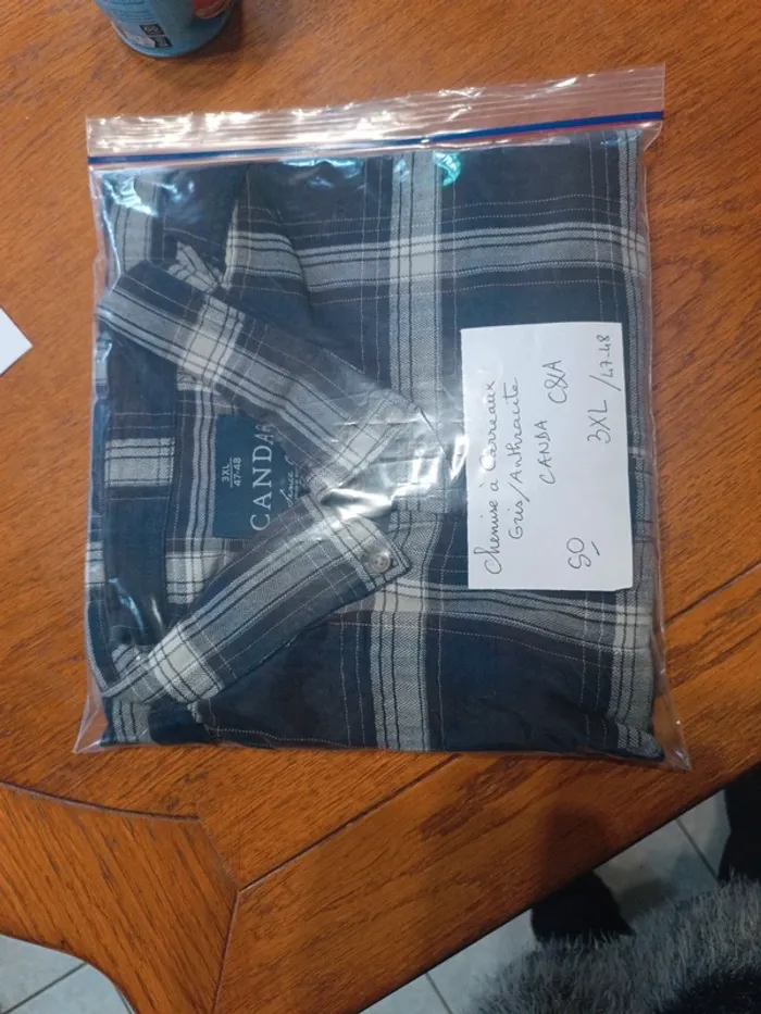 Chemise à carreaux gris/anthracite Canda C&A 3XL. Épaules 56 cm. Aisselles 76 cm. Longueur 80 cm. Pans arrondis. Manches 68 cm. 100% coton. Neuve.