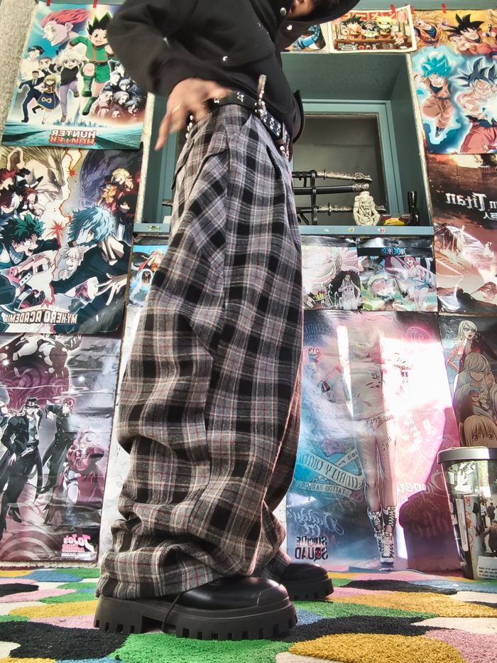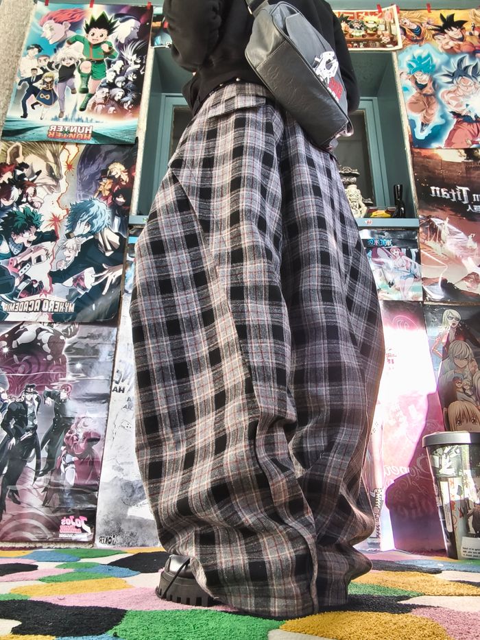 Pantalon baggy barrel à carreaux - Casual Y2k (M)