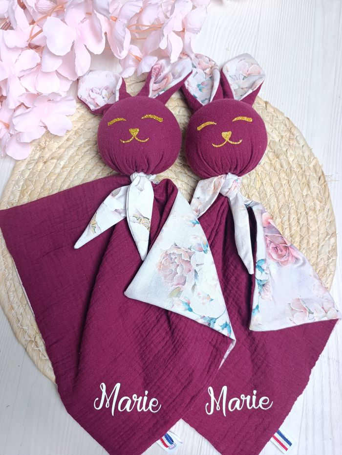 Doudou lange personnalisé Fait main en double gaze de coton Différents coloris Doudou 17.90€ Broderie prénom 4€/ flocage prénom 2€