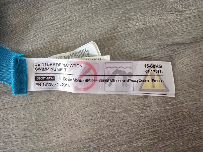 Ceinture de natation, en très bon état. Pour : 15kg à 60kg. Les sangles sont en très bon état, il n'y a pas de bouts coupés ou décousus. Marque : Nabaiji de Decathlon 4€, envoi rapide et soigné.