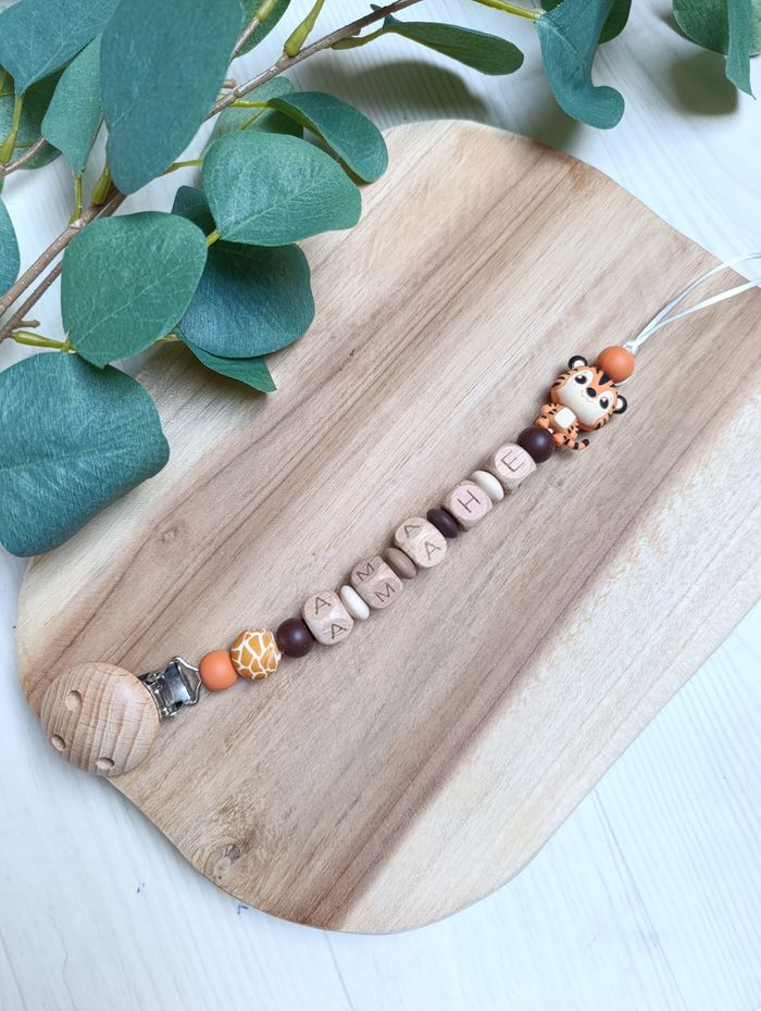 Attache tétine personnalisée tigre Silicone alimentaire Sans BPA ni autres substances toxique Différents coloris possibles