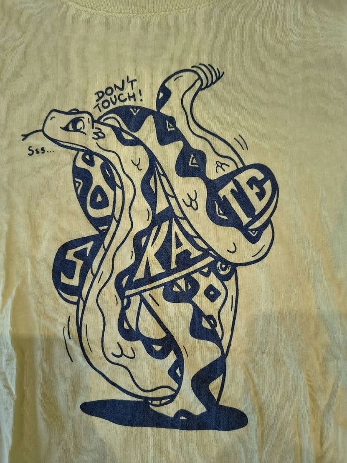 Motif serpent et skate. Jaune. Bon état à très bon.