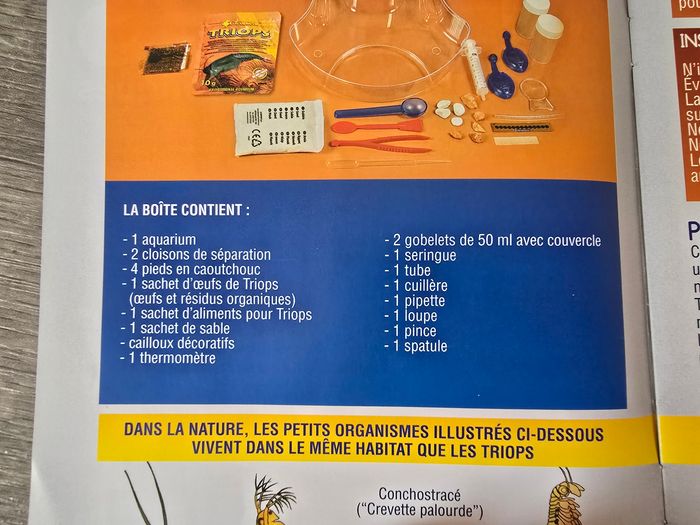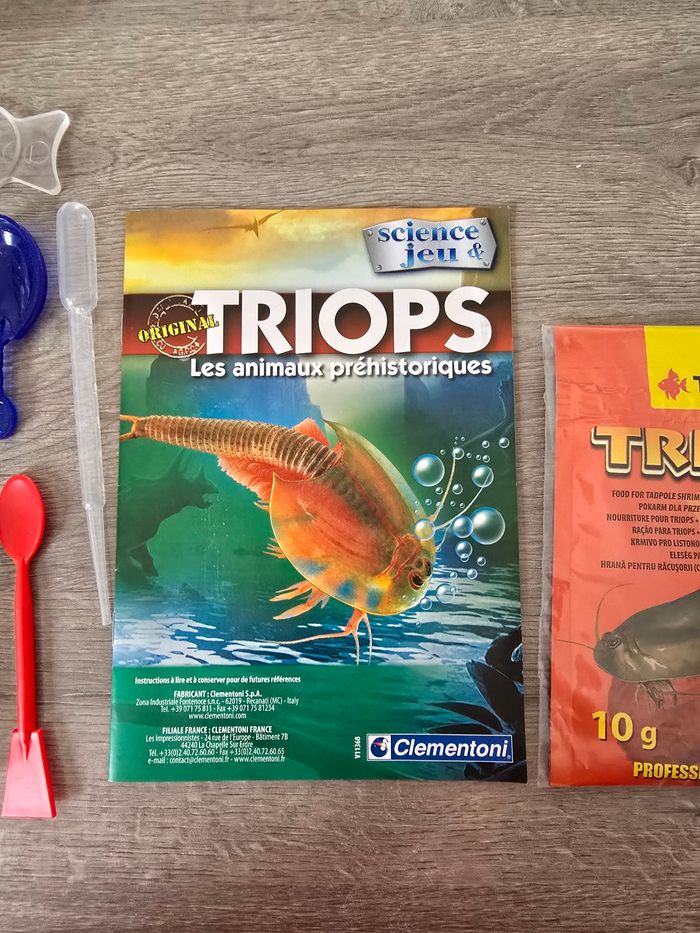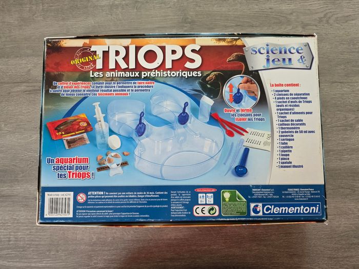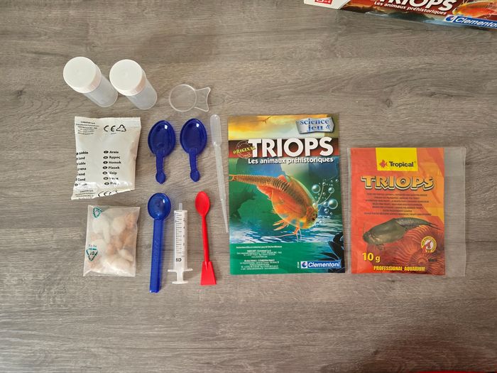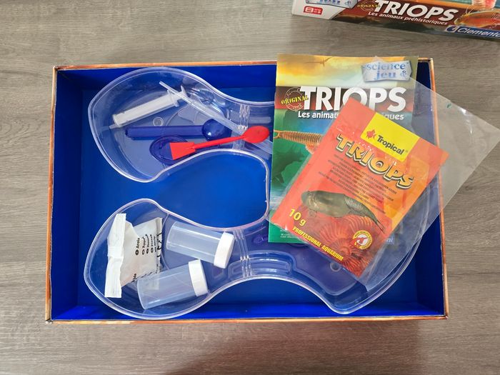 Jeu de science "Triops". Tout est en bon état. Il manque : - le sachet d'œuf de Triops - le tube - la pince La boîte a quelques traces d'usures. 3€, envoi rapide et soigné.