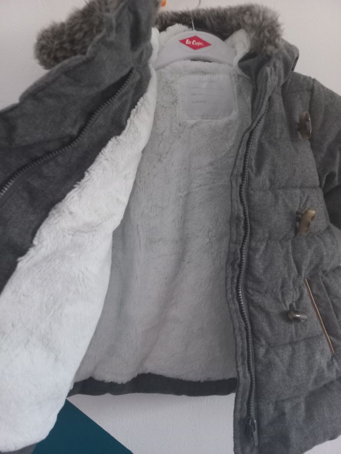 Duffe coat intérieur tout doux , chaud avec capuche également chaude et toute douce ,fermeture éclair sur le devant et en plus bouton pour la finition habillé.