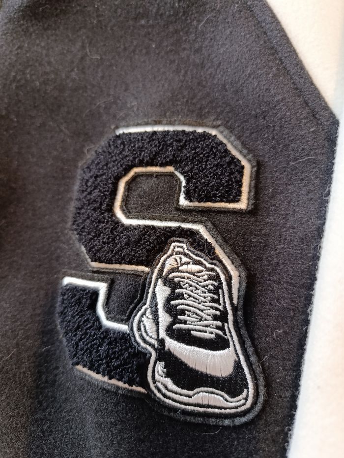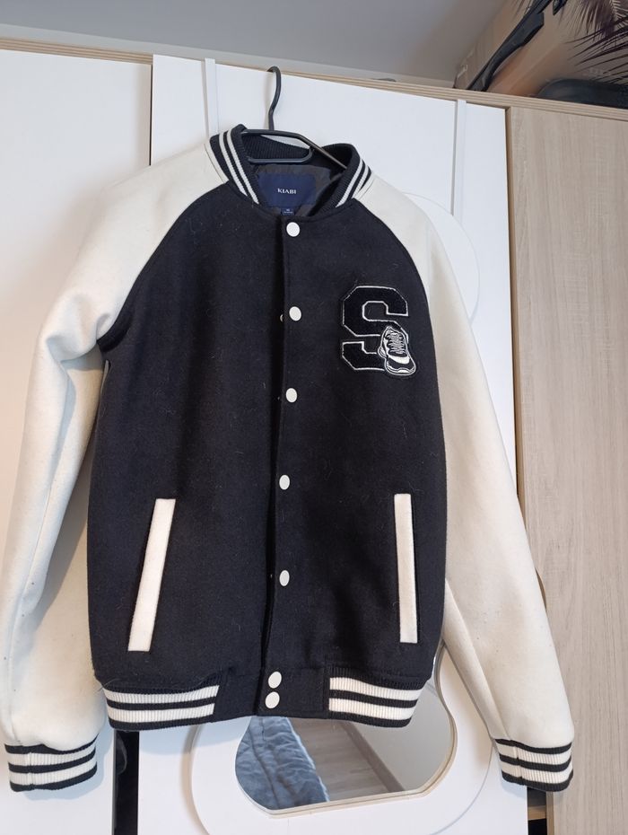 Blouson garçon taille XS noir et blanc acheté rayon jeune homme correspondrait à un 14 ans. Très peu porté bon état. Fermeture par boutons pressions.