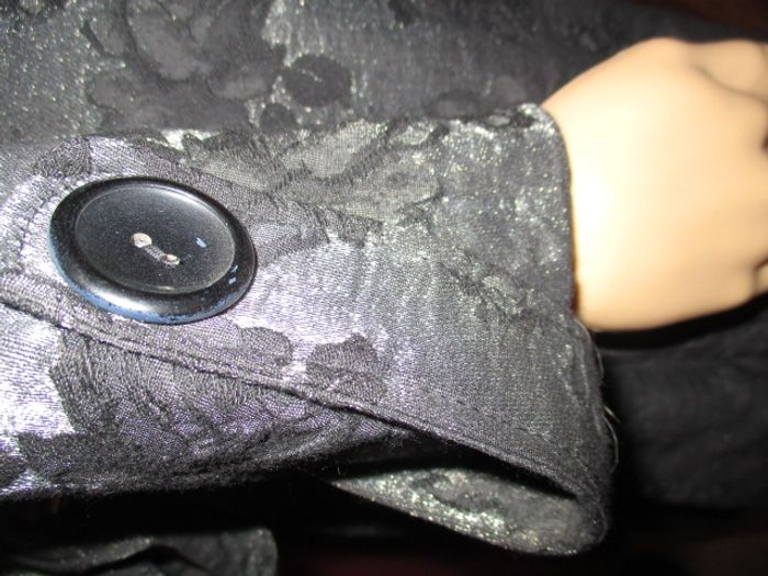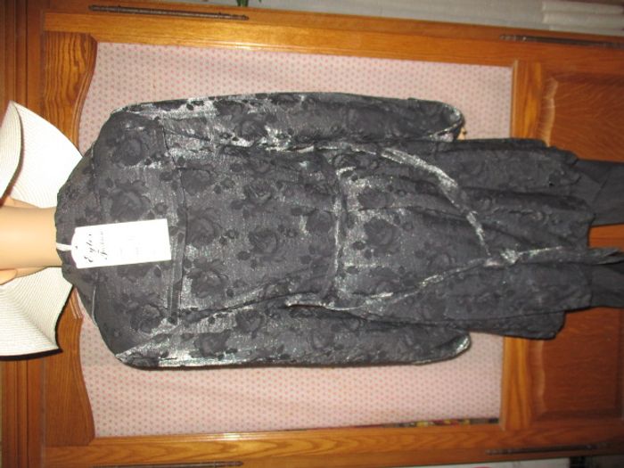 manteau longue été couleurs noir argenté / noir avec une ceinture 70%rayon 30 % polyamides taille 40..