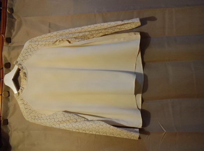 Vends chemisier blanc cassé - Col montant avec dentelle (qui ne gratte pas) - Manches longues en dentelle - 100% polyester
