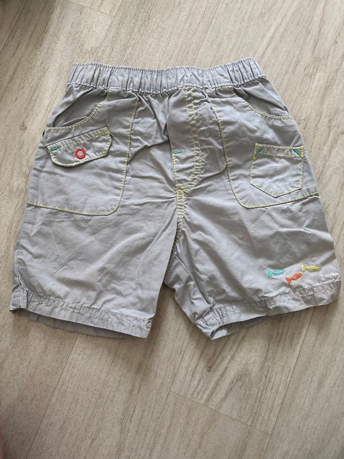 1 short absorba 9 mois rayé beige 1 short orchestra 9 mois gris avec 3 petits poissons