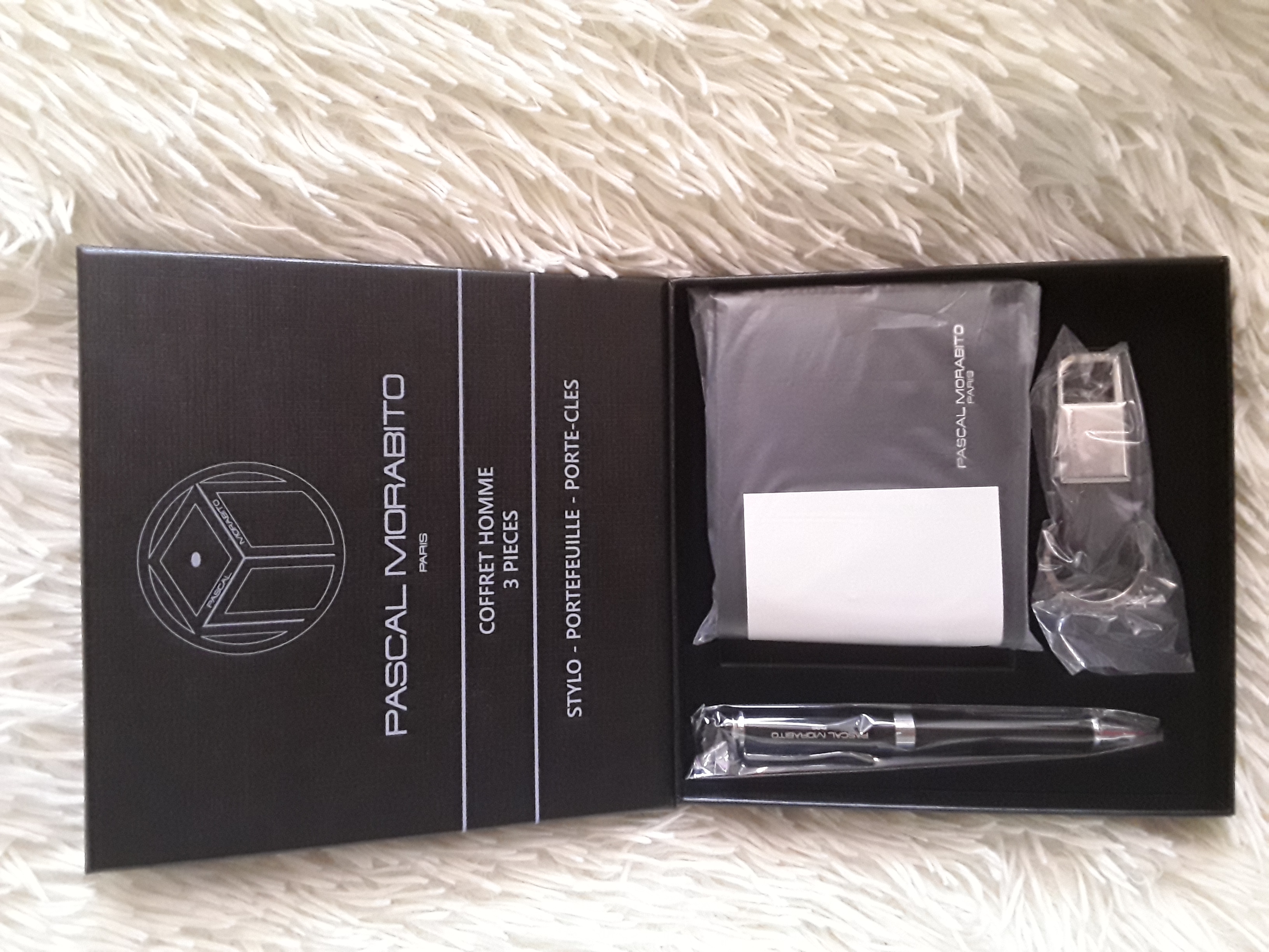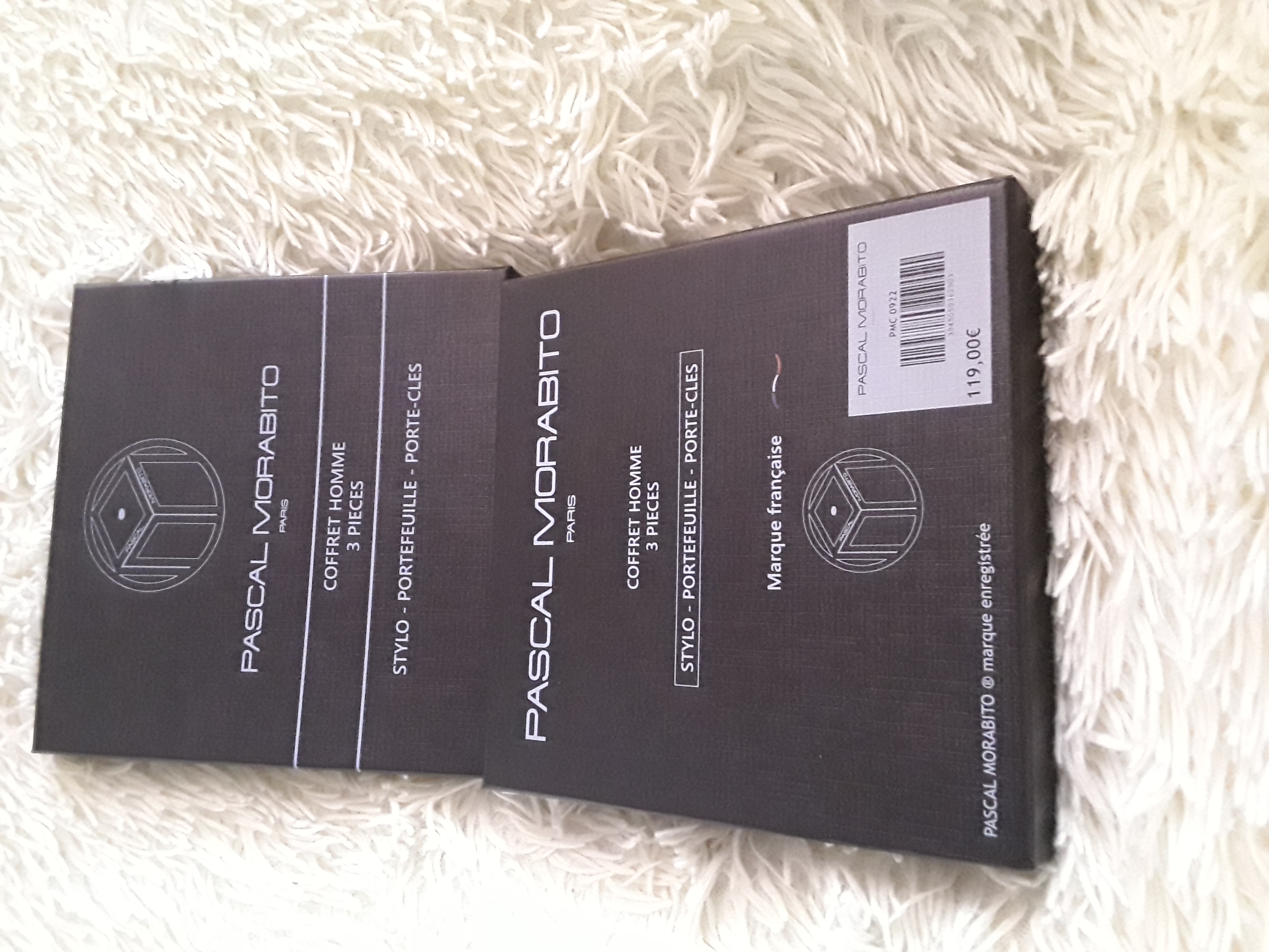 COFFRET HOMME 3 PIÈCES MARQUE : PASCAL MORABITO CONTIENT : 1 STYLO, 1 PORTEFEUILLE ET 1 PORTE- CLÉS VALEUR : 119€ PLUSIEURS PHOTOS MONTRANT AUTHENTICITÉ, ÉTIQUETTE...