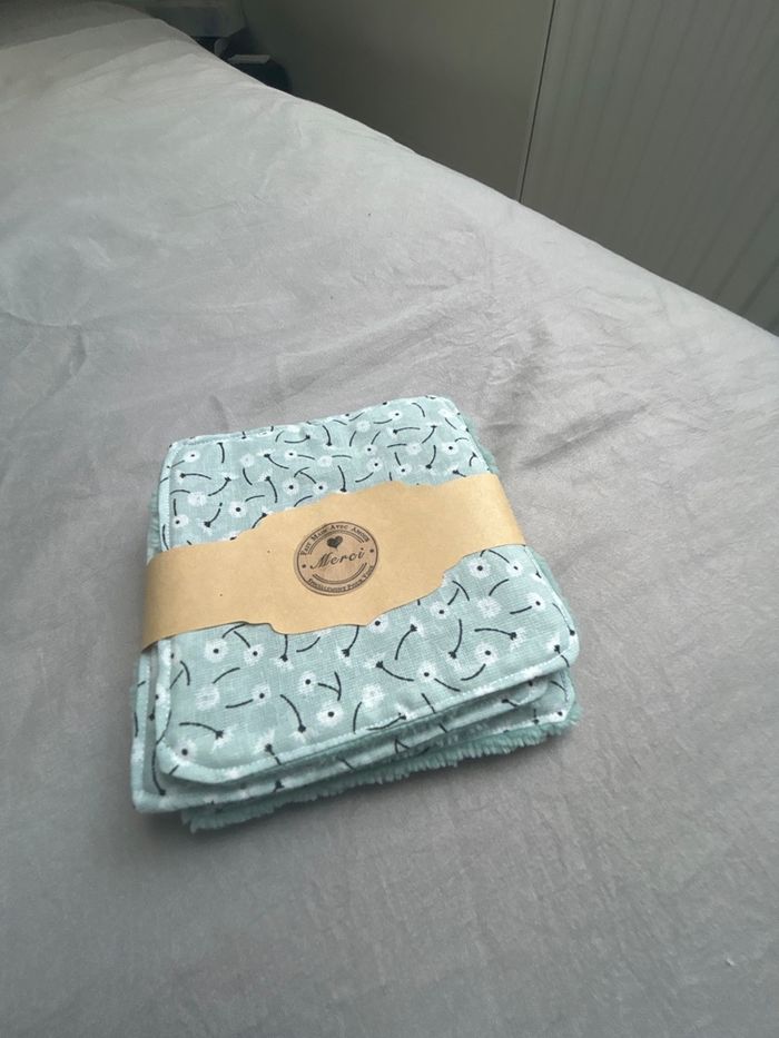 Lot de 5 carrés lavables idéal change ou démaquillage Neuf en coton éponge et tissu coton vert