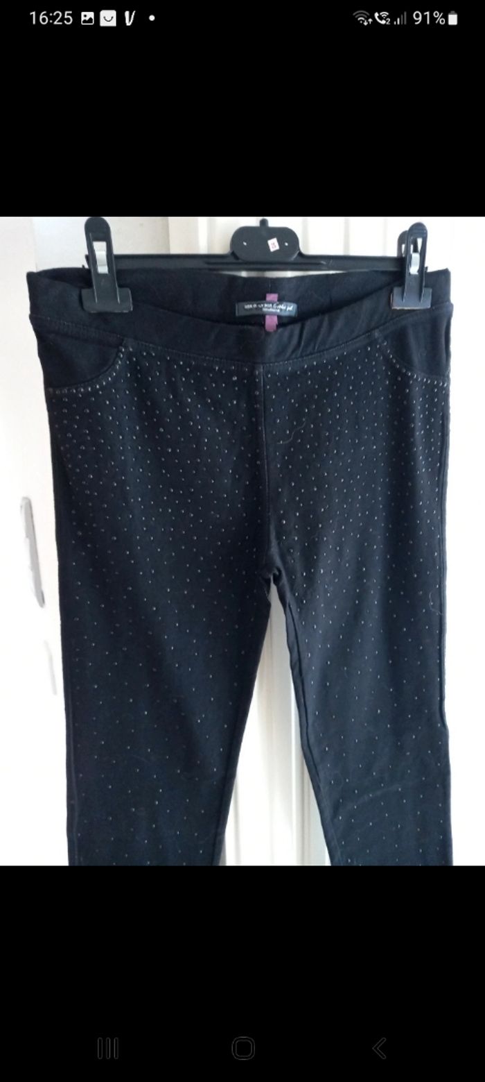 Pantalon legging jersey noir incrusté de strass noir jamais porté trop juste pour moi