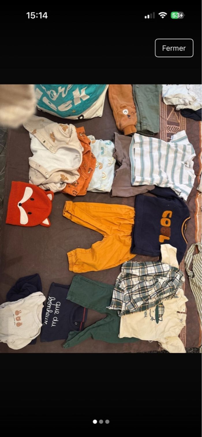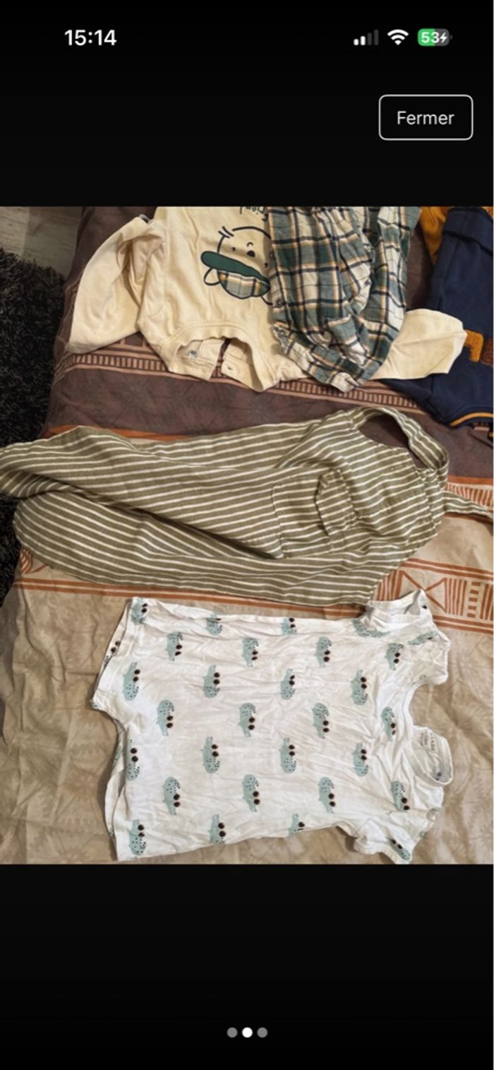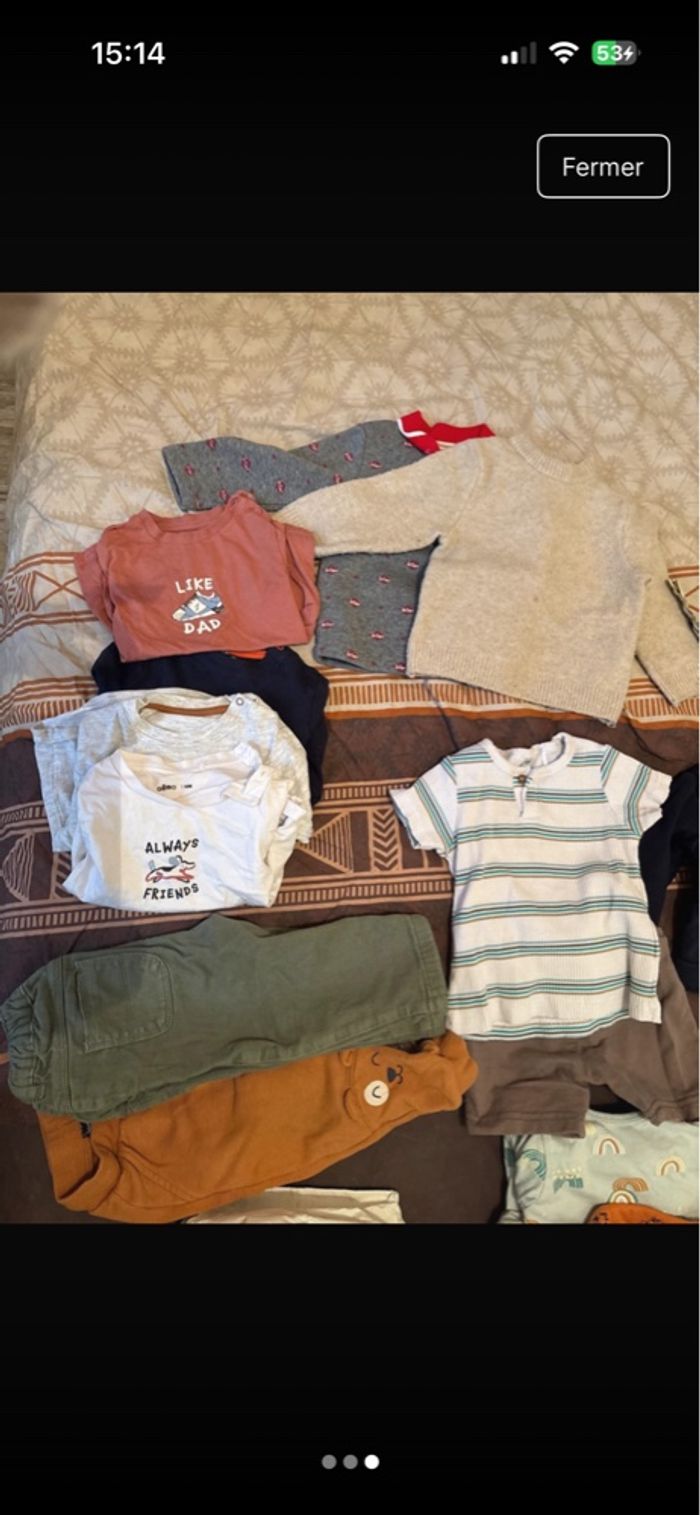 Vends lot vêtement 12/18 mois majorité de 12 mois toutes saisons. Pyjamas , ensembles , tee shirt , pantalons …