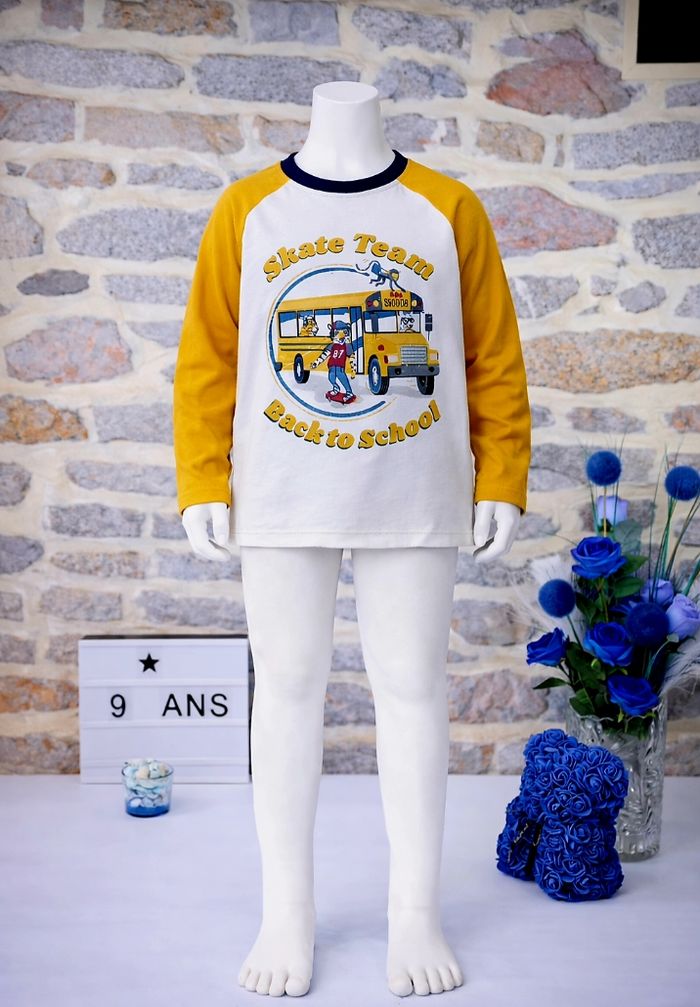 T-shirt manches longues raglan " Skate Team " garçon taille 9 ans marque Sergent Major ✴️ Manches longues ✴️ Col rond avec bordure en côtes bleue marine ✴️ Couleur => Blanc et moutarde fonce ✴️ Composition => 100 % coton