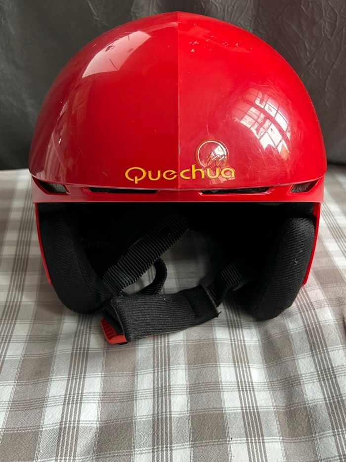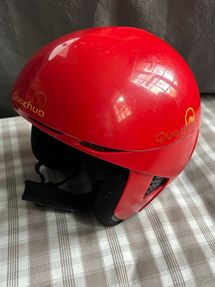 casque de ski enfant de la marque Quechua (Décathlon). Couleur rouge. Taille 8/10 ans. En très bon état. Très peu servi.