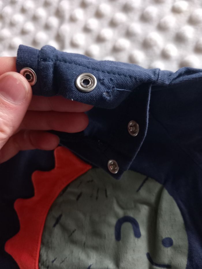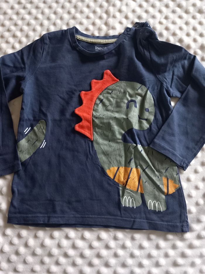 Maillot manches longues In extenso 4 ans Motif dinosaure légèrement craquelé Fermeture par pressions au col , petit trou mais ne se voit pas porté