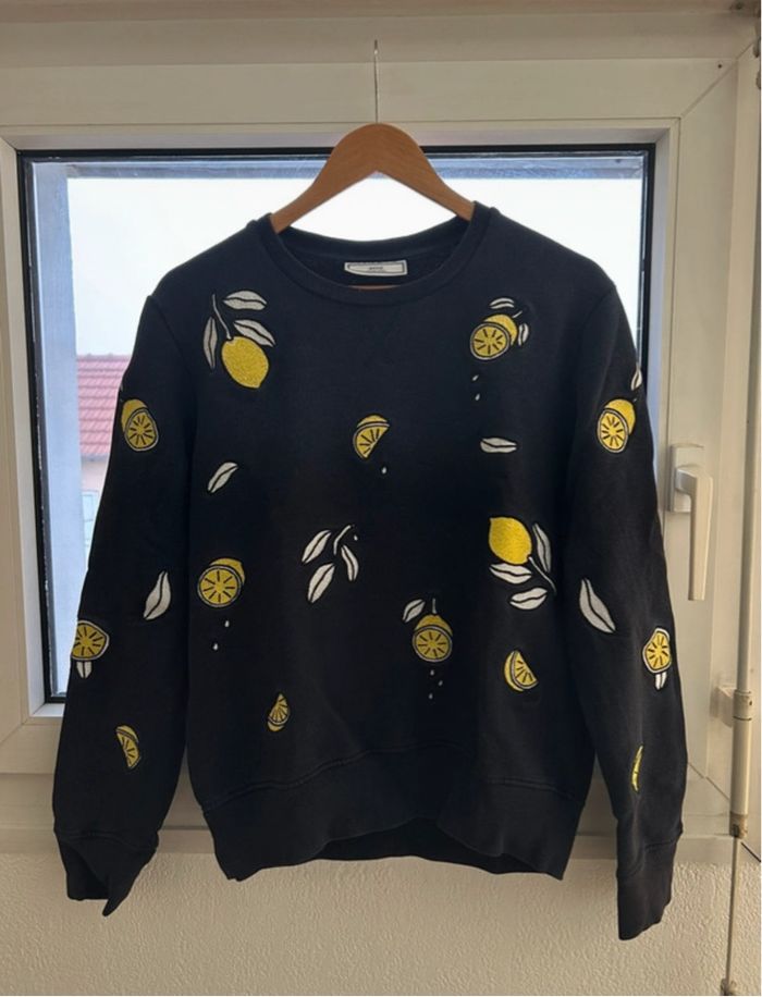 Sweat-Shirt AMI Bleu foncé avec des citrons brodés Unisexe Convient à un M femme, petit S homme