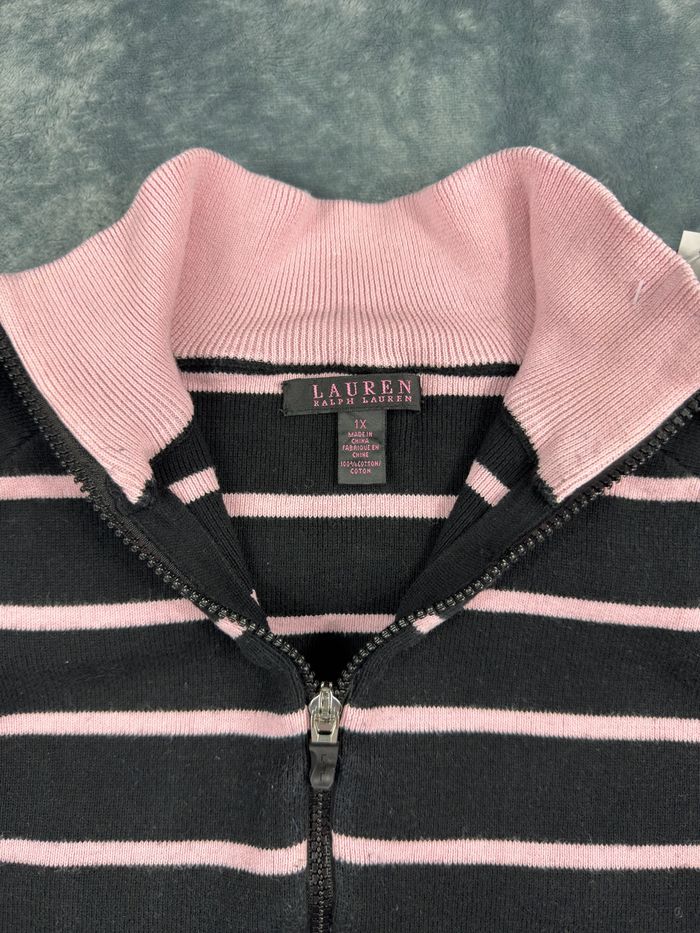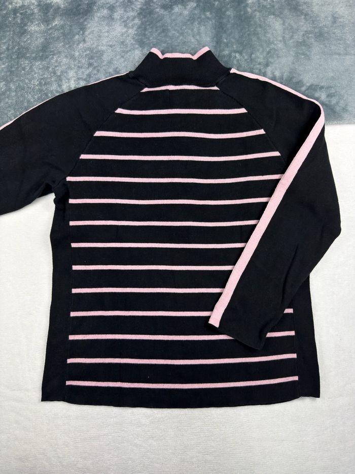 Demi zip Pull Col Zippé Ralph Lauren Femme Taille XL Noir Rayé Rose Très bon état Vintage 01425 - photo numéro 2