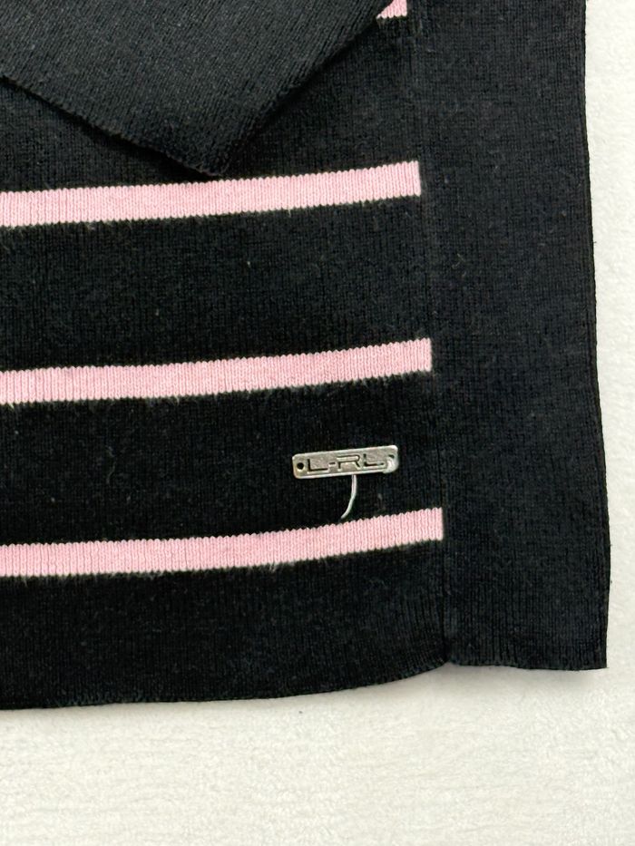 Demi zip Pull Col Zippé Ralph Lauren Femme Taille XL Noir Rayé Rose Très bon état Vintage 01425 - photo numéro 4