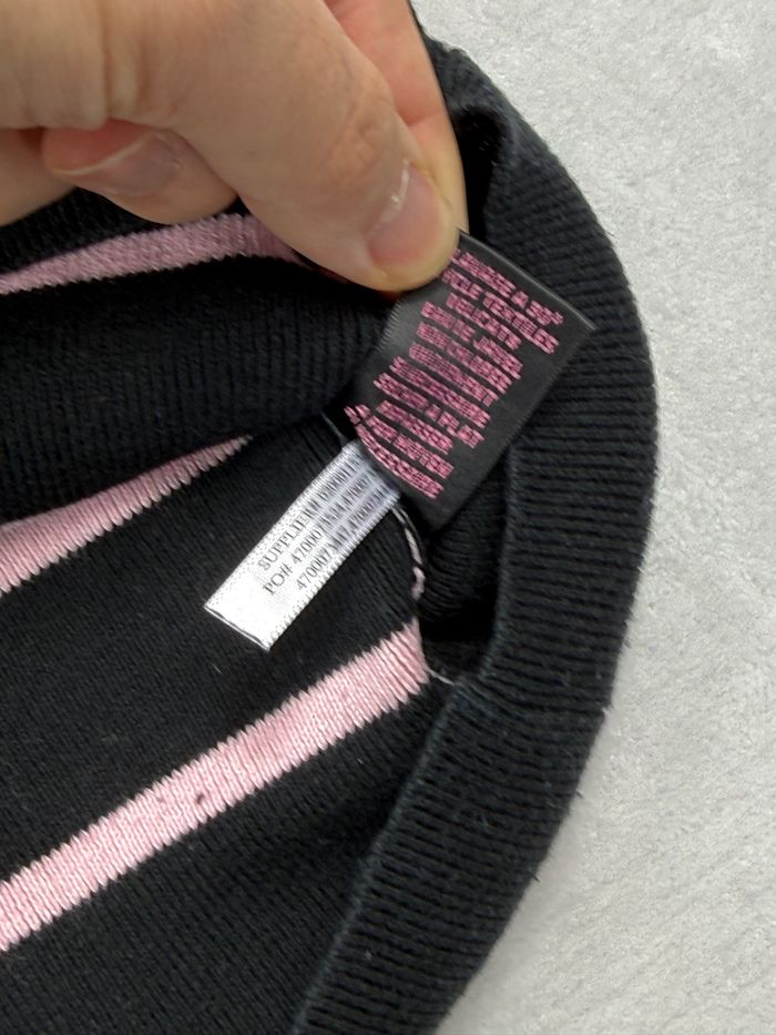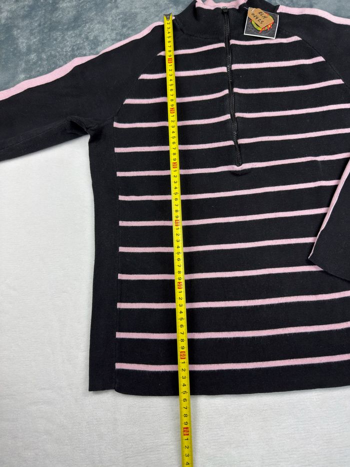 Demi zip Pull Col Zippé Ralph Lauren Femme Taille XL Noir Rayé Rose Très bon état Vintage 01425 - photo numéro 8