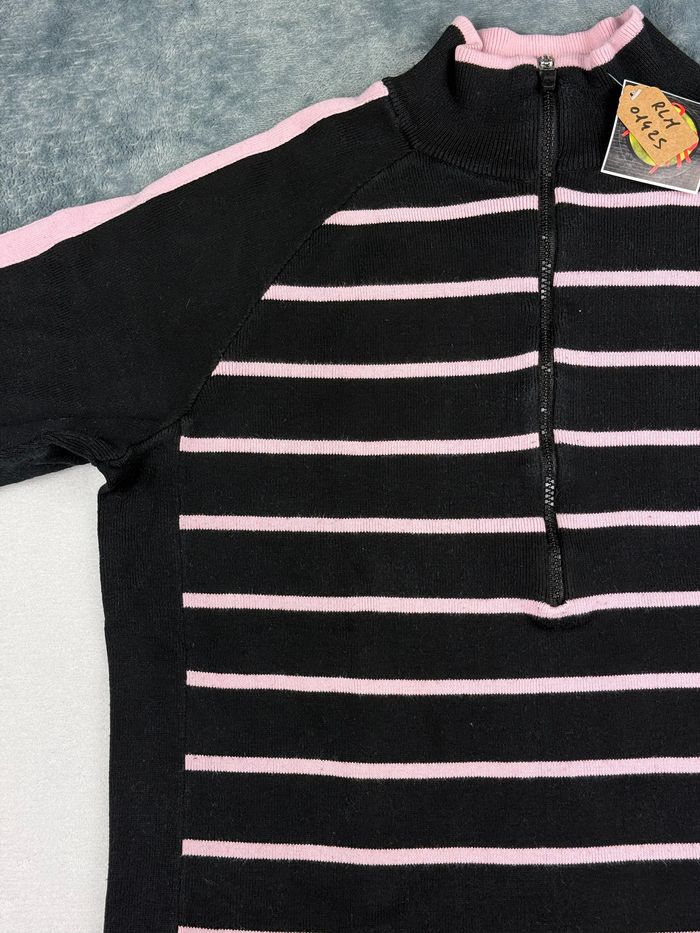 Demi zip Pull Col Zippé Ralph Lauren Femme Taille XL Noir Rayé Rose Très bon état Vintage 01425