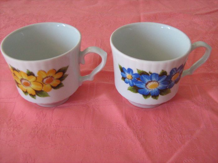 Vends 2 tasses à café : l'une à fleurs jaunes et l'autre à fleurs bleues. Hauteur : 7 cm - Diamètre : 7,5 cm. Neuves, jamais utilisées. N'hésitez pas à consulter mes autres annonces.