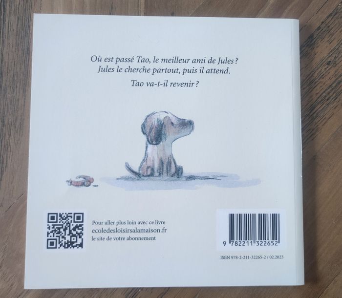 Les présentations sont faites entre Tao et le nouvel arrivant à la maison, Jules. Jules et Tao se reniflent, se regardent un peu et jouent toute la journée. Jules et Tao sont les meilleurs amis du monde puis Jules n'est plus là. Tao se demande où est passé Jules. Alors, il attend. Son ami va-t-il revenir ? Livre neuf.