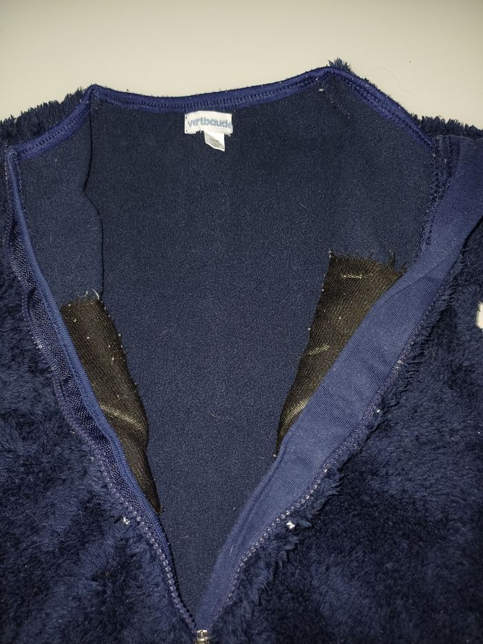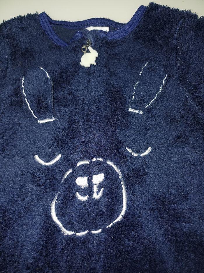 Très joli surpyjama en tres bon état la marque est VERBAUDET et la taille 12 mois. De couleur bleu marine et se ferme avec une fermeture voir la photo ci jointe et le motif est un lapin 🐰 .