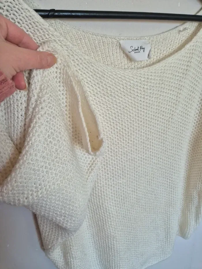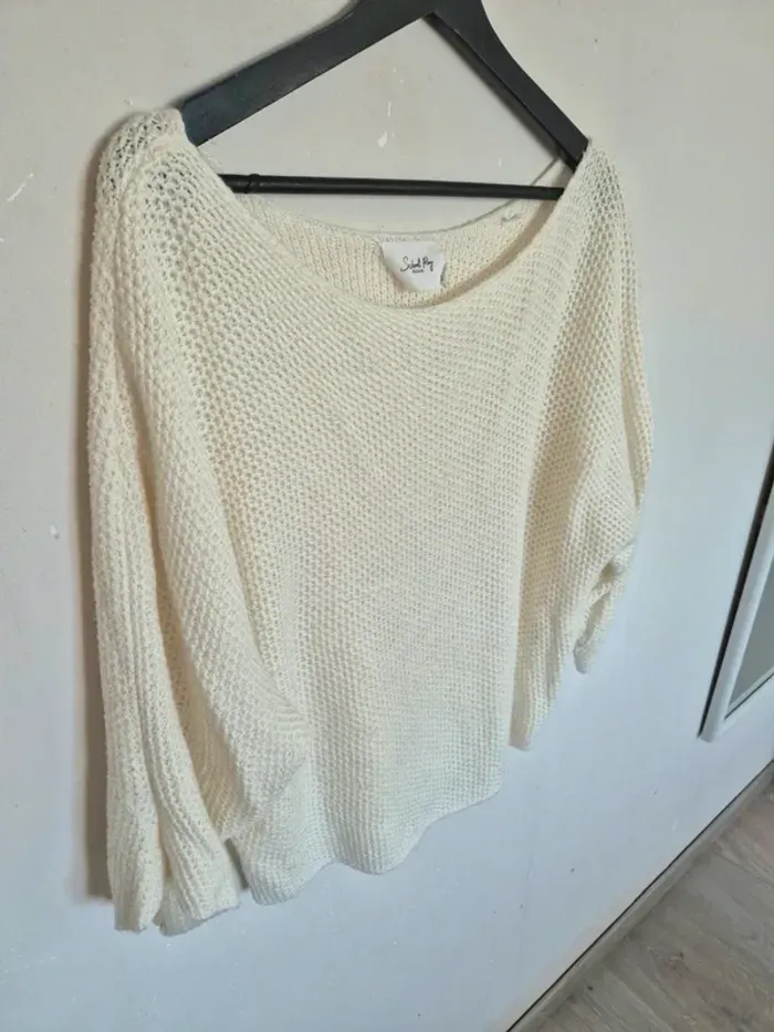 Pull couleur crème, manche 3/4 chauve souris, jolie maille torsadée ➡️Largeur à plat sous les bras 50 cm ➡️Longueur 55 cm ➡️ 90 % acrylique 10 % polyamide ⭐ Excellent état ✈Envoi rapide des colis 💗 Abonnez vous à mon profil, nombreux articles ajoutés régulièrement ! 🌸 Tapez Laetitresors pour voir mes annonces #pull #school #ray #maille #torsadée