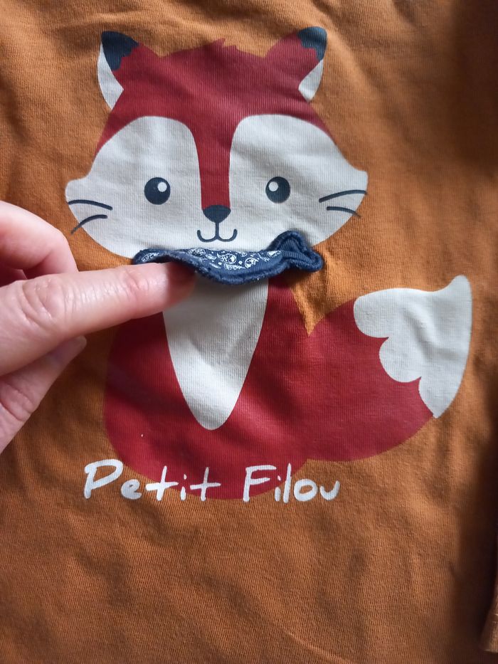Maillot manches longues in extenso 4 ans Motif renard avec inscription petit filou et bavoirs en tissu Fermeture par pressions au col