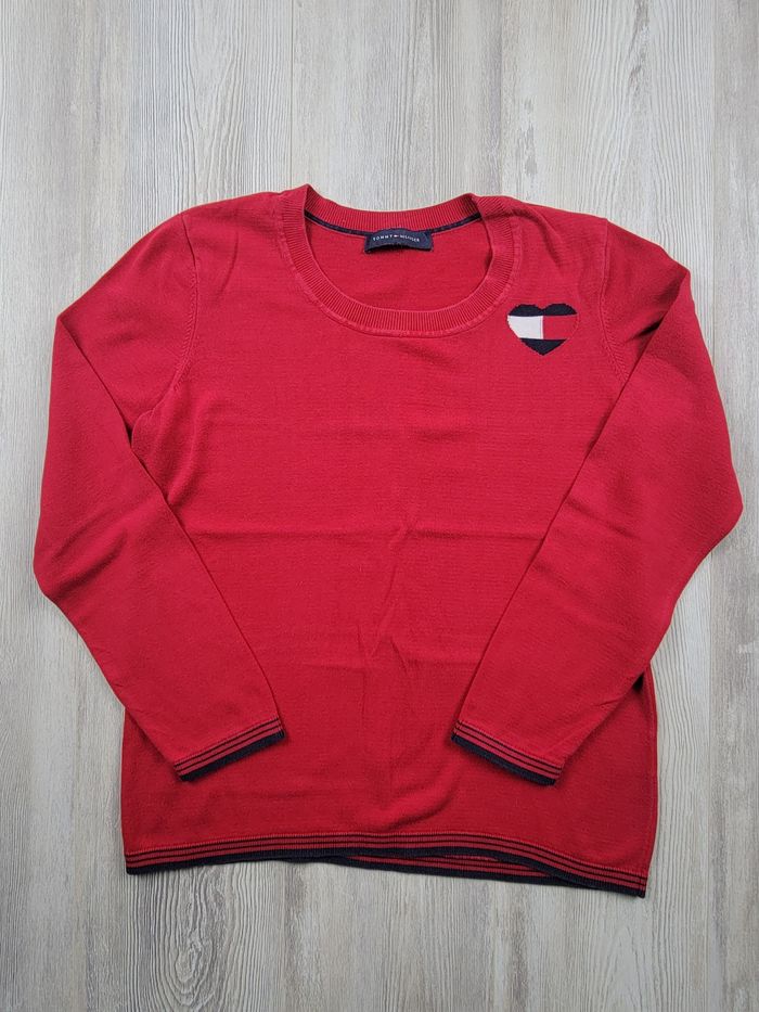 Joli pull TH en taille S, motif cœur brodé sur le torse. Épaules : 38 cm Manches longues de 58 cm. Longueur 61 cm En excellent état. Envoi sous 24 heures ! #1-11