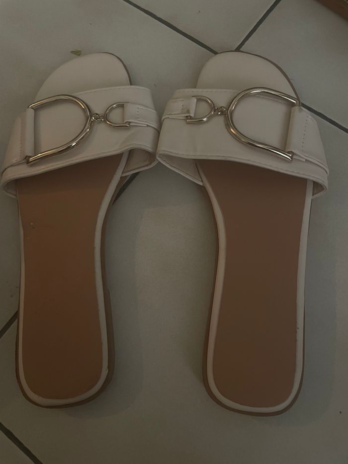 Magnifiques sandales plates rose poudré avec boucle dorée neuves