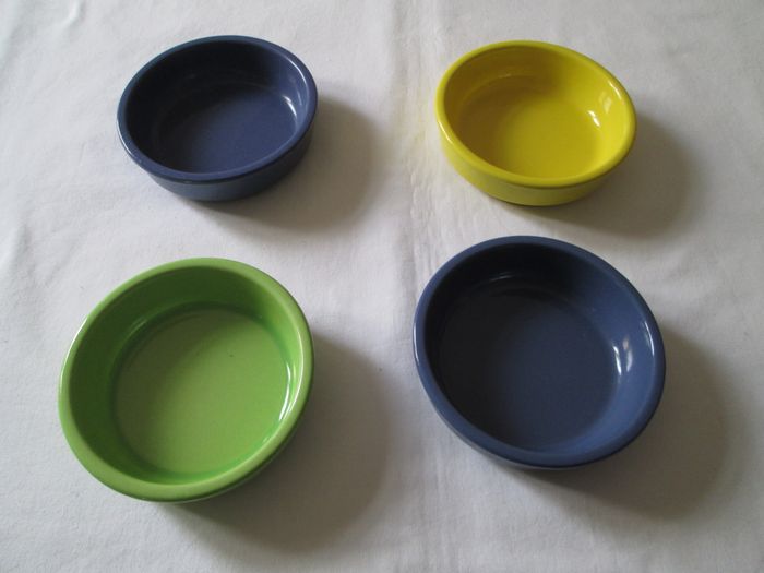 Vends lot de 4 ramequins bas. 2 bleus + 1 jaune + 1 vert. - Hauteur : 3 cm - Diamètre : 11,7 cm Neufs, jamais utilisés. N'hésitez pas à consulter mes autres annonces.
